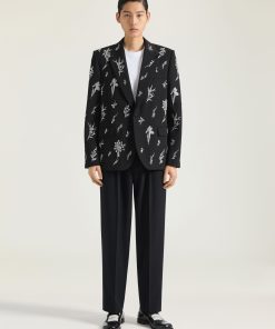 Givenchy Men’s Ready-to-wear Single Breasted Jacket In Crystal Embroidered Wool | Black