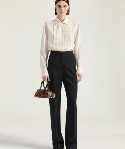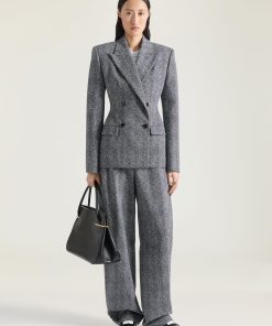 Givenchy Women’s Ready-to-wear Double Pleat Pants In Wool Silk Herringbone | Black & White