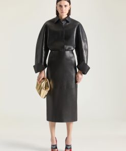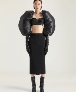 Givenchy Women’s Ready-to-wear Midi Pencil Skirt In Wool Silk Herringbone | Black & White