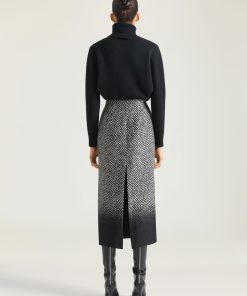 Givenchy Women’s Ready-to-wear Midi Pencil Skirt In Wool Silk Herringbone | Black & White