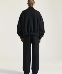 - Elasticated knitted collar, hem and cuffs.