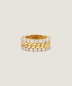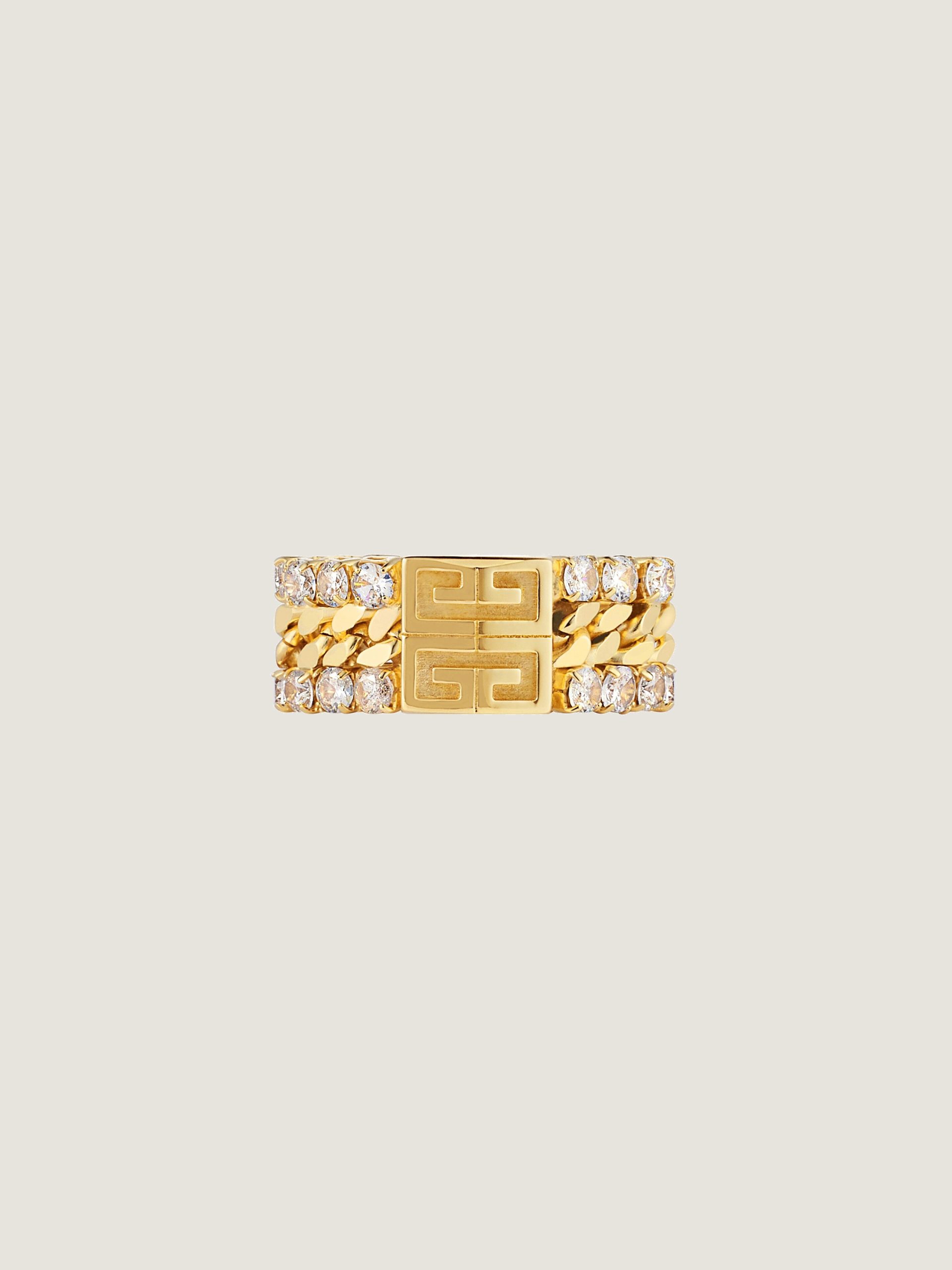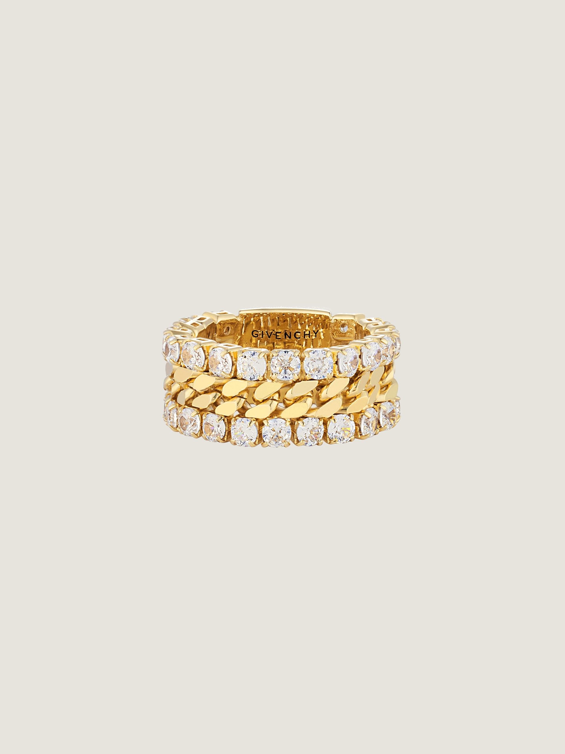 - Ring in golden-finish metal with crystals.