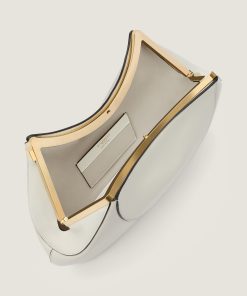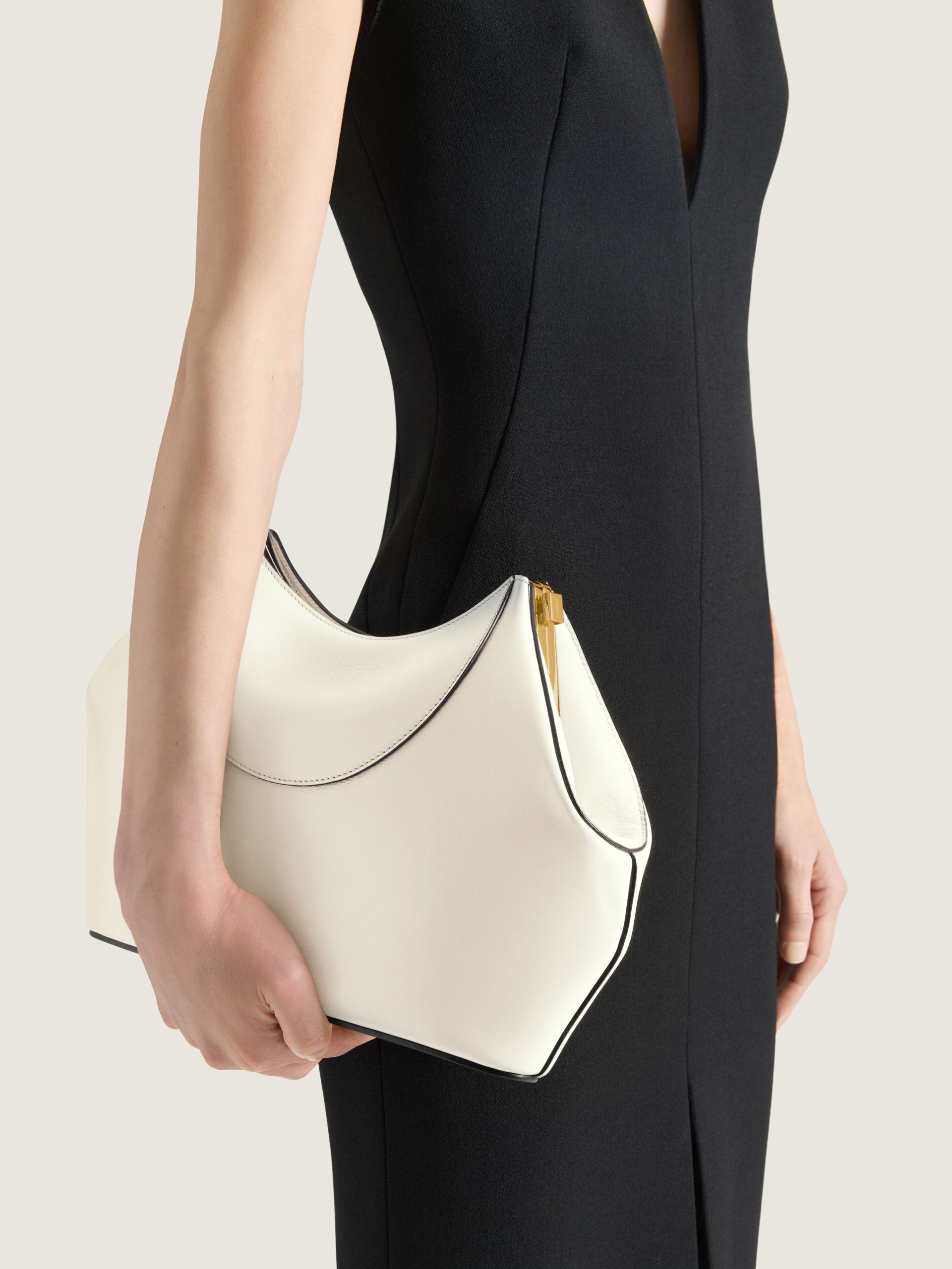 - Clutch in leather with natural grain and textured finishing.