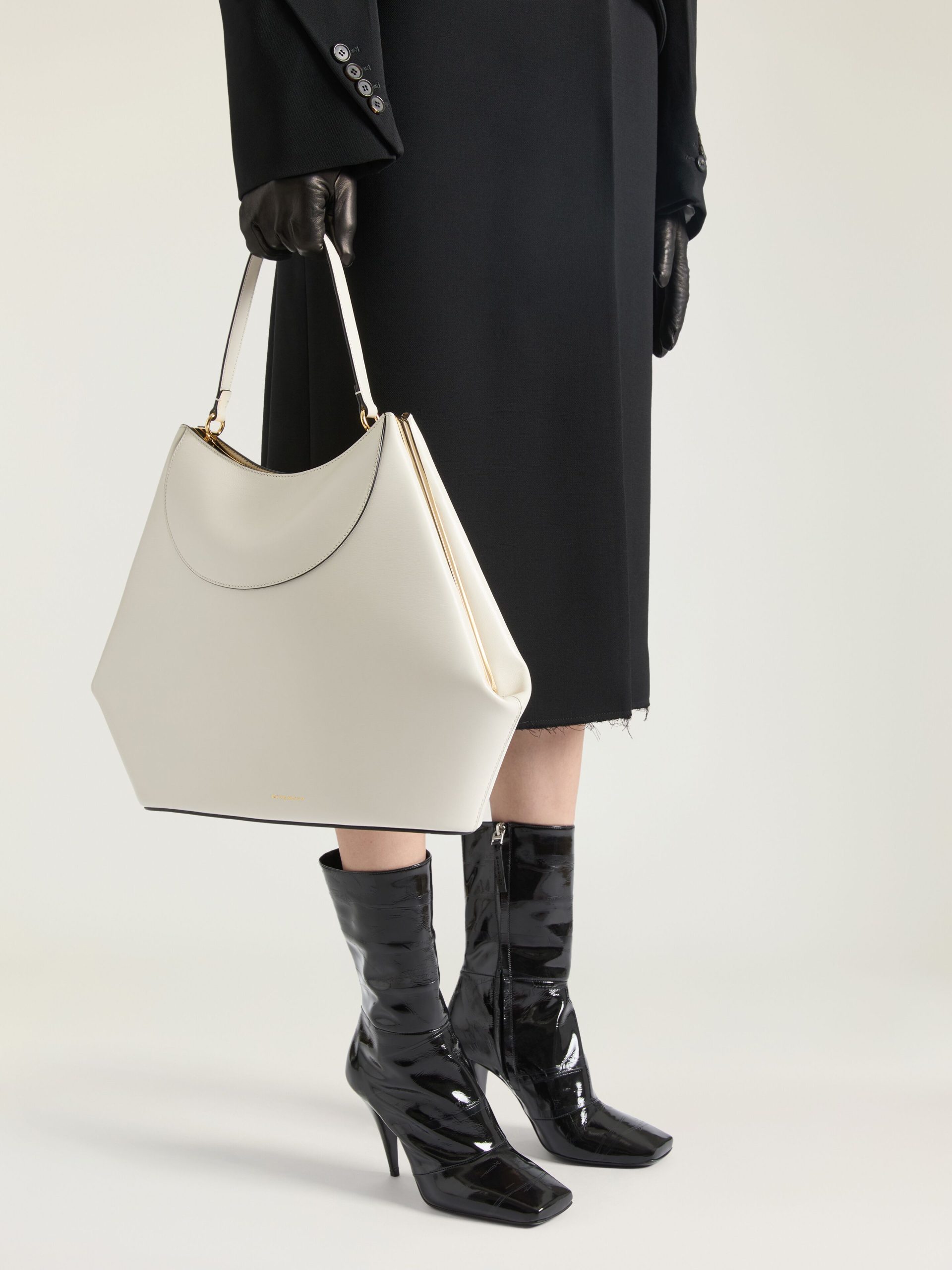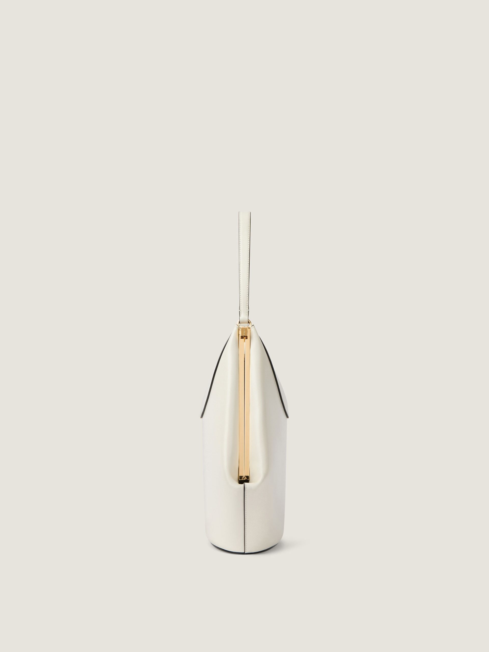 - Top handle bag in leather with natural grain and textured finishing.