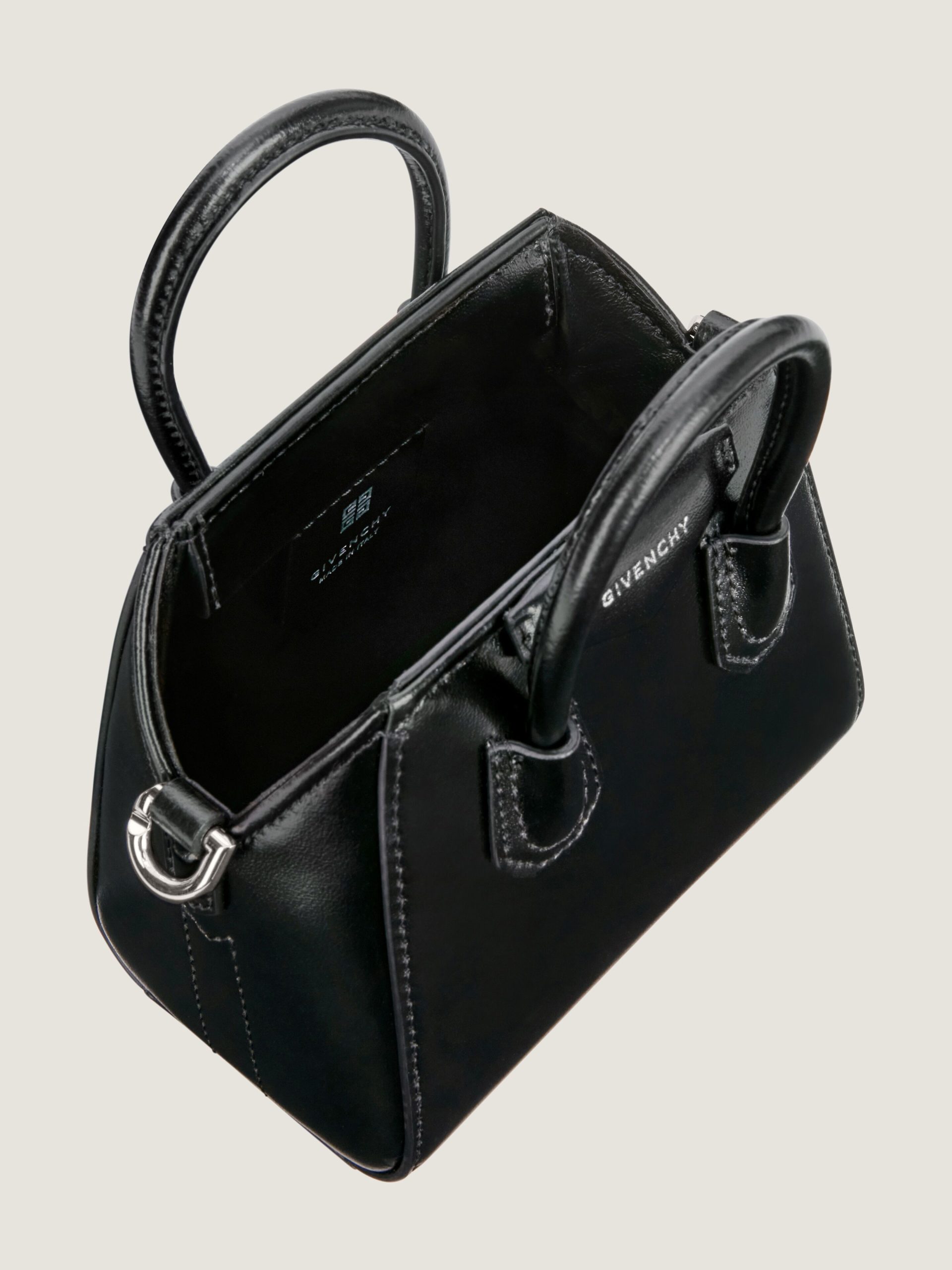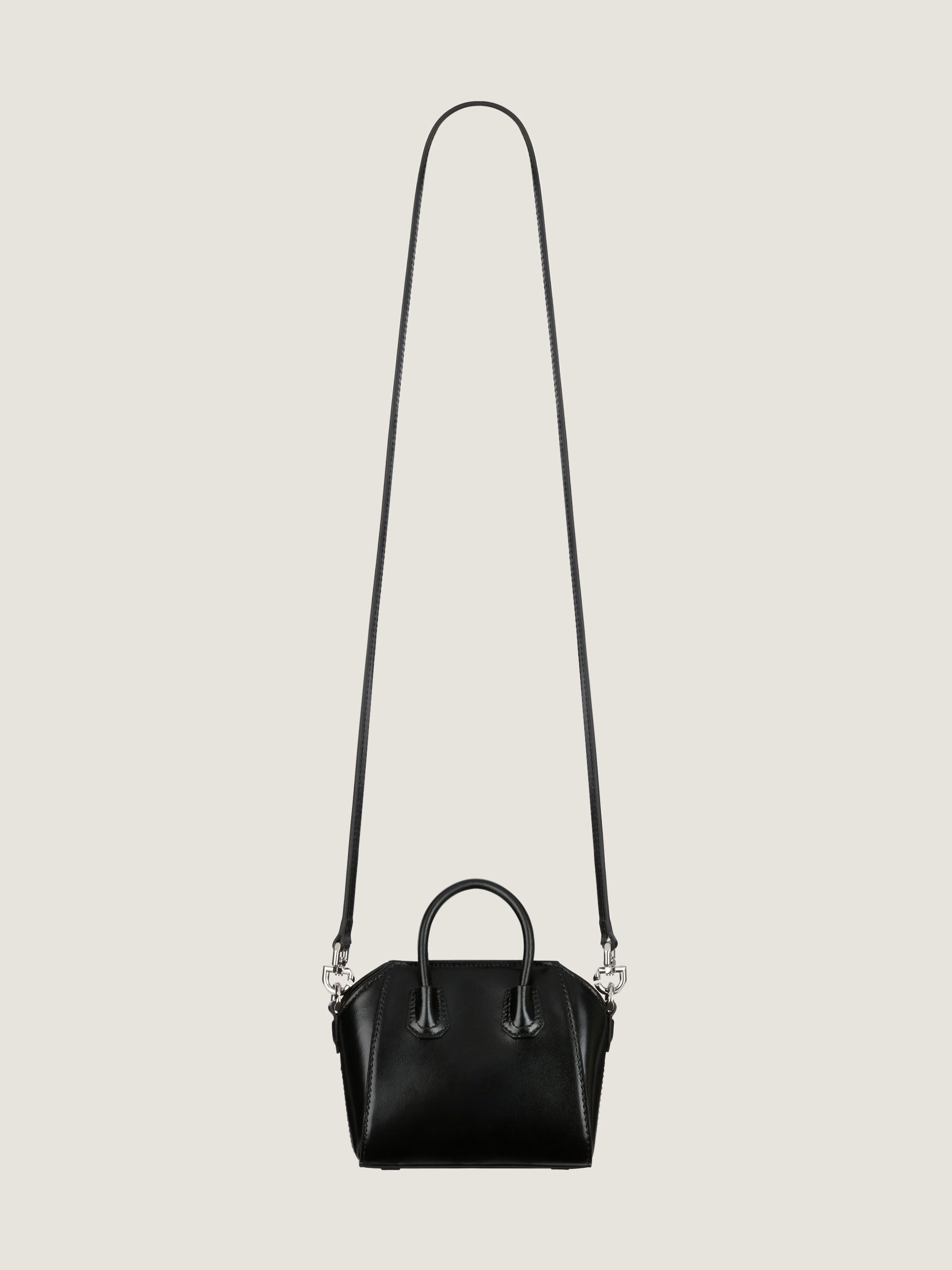 - Micro handbag or crossbody bag in smooth Box calfskin leather.