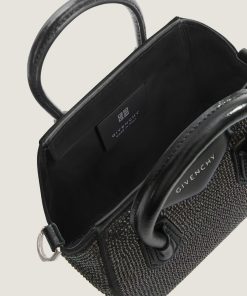 Givenchy Women’s Micro Antigona Bag In Satin With Strass In – Black | Black