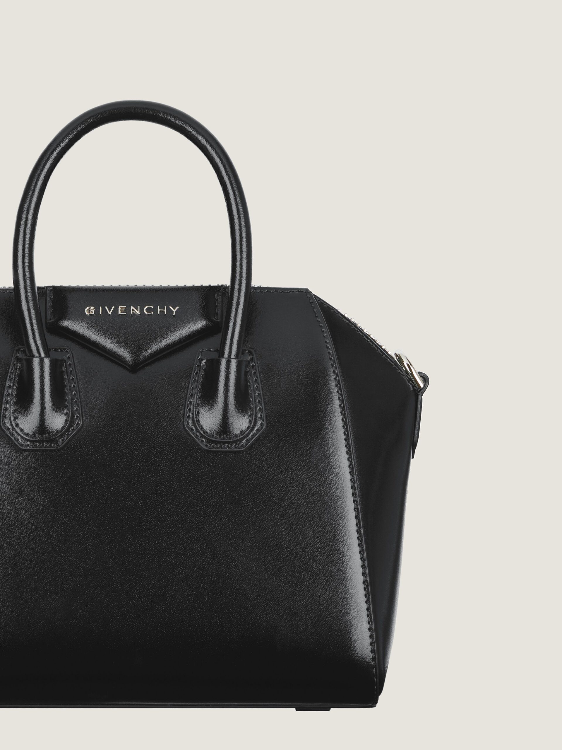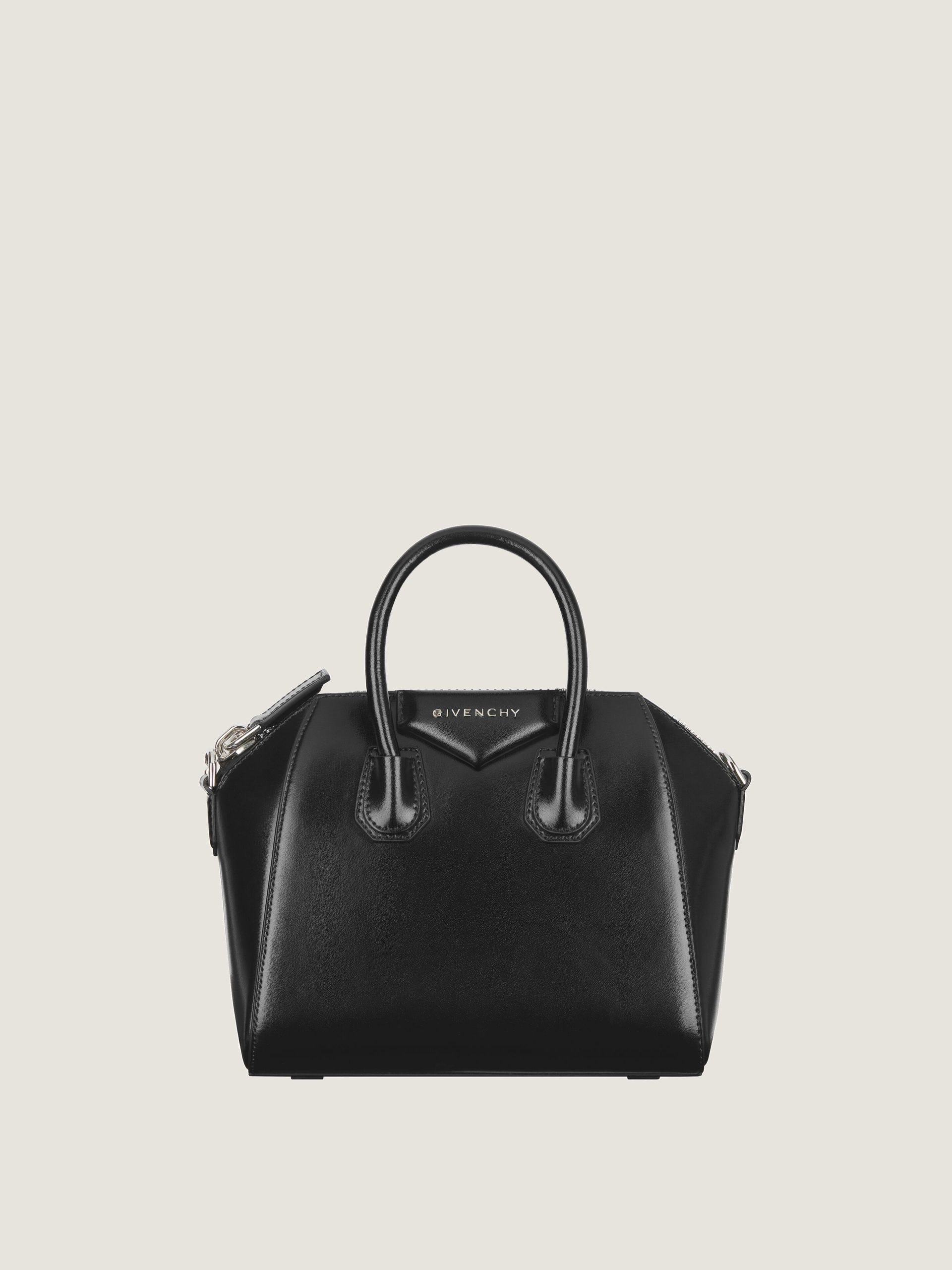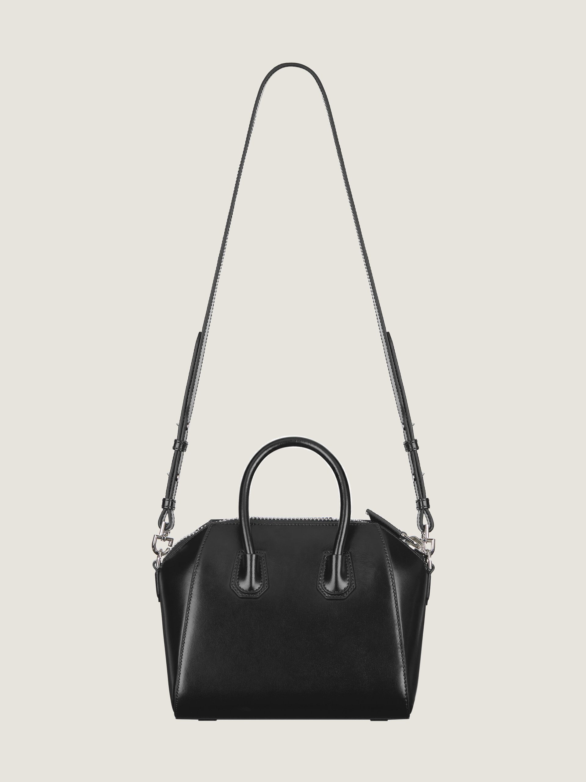 - Mini handbag or crossbody bag in Box calfskin leather.