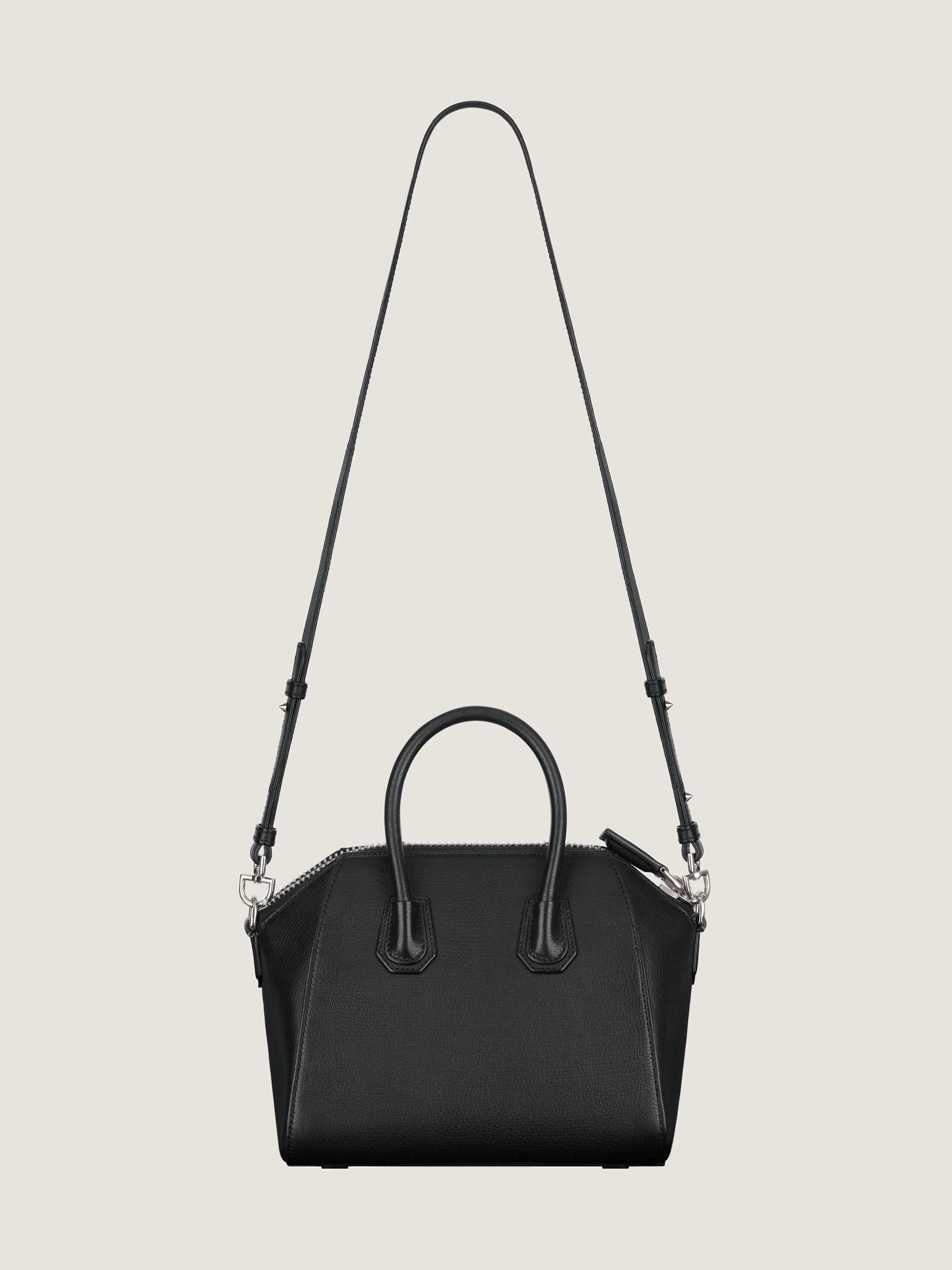 - Mini handbag or crossbody bag in grained goatskin leather.