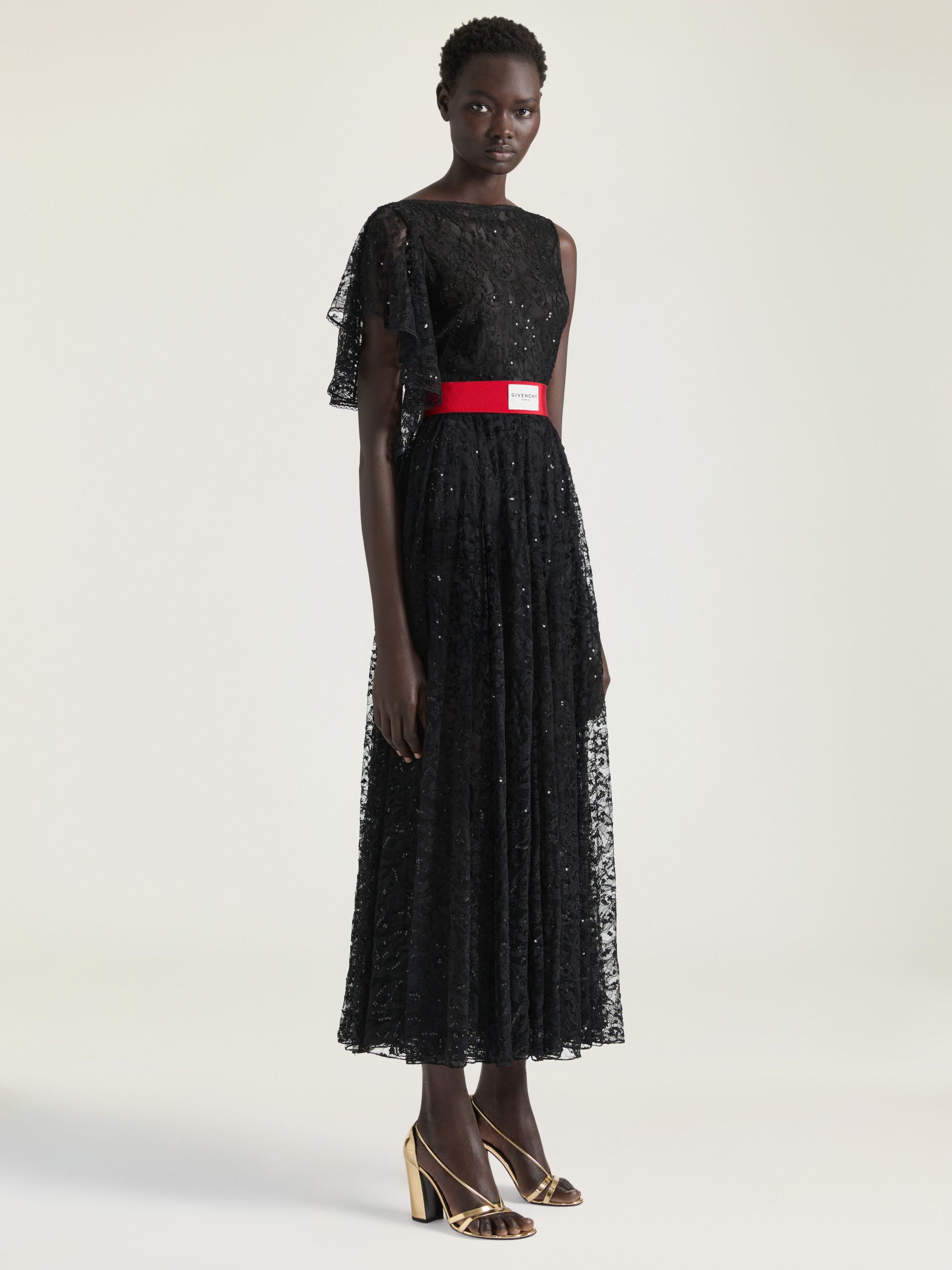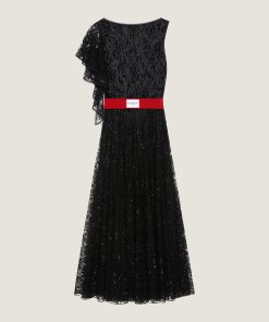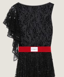 Givenchy Women’s Ready-to-wear Asymmetric Dress In Lace With Sequins In – Black | Black