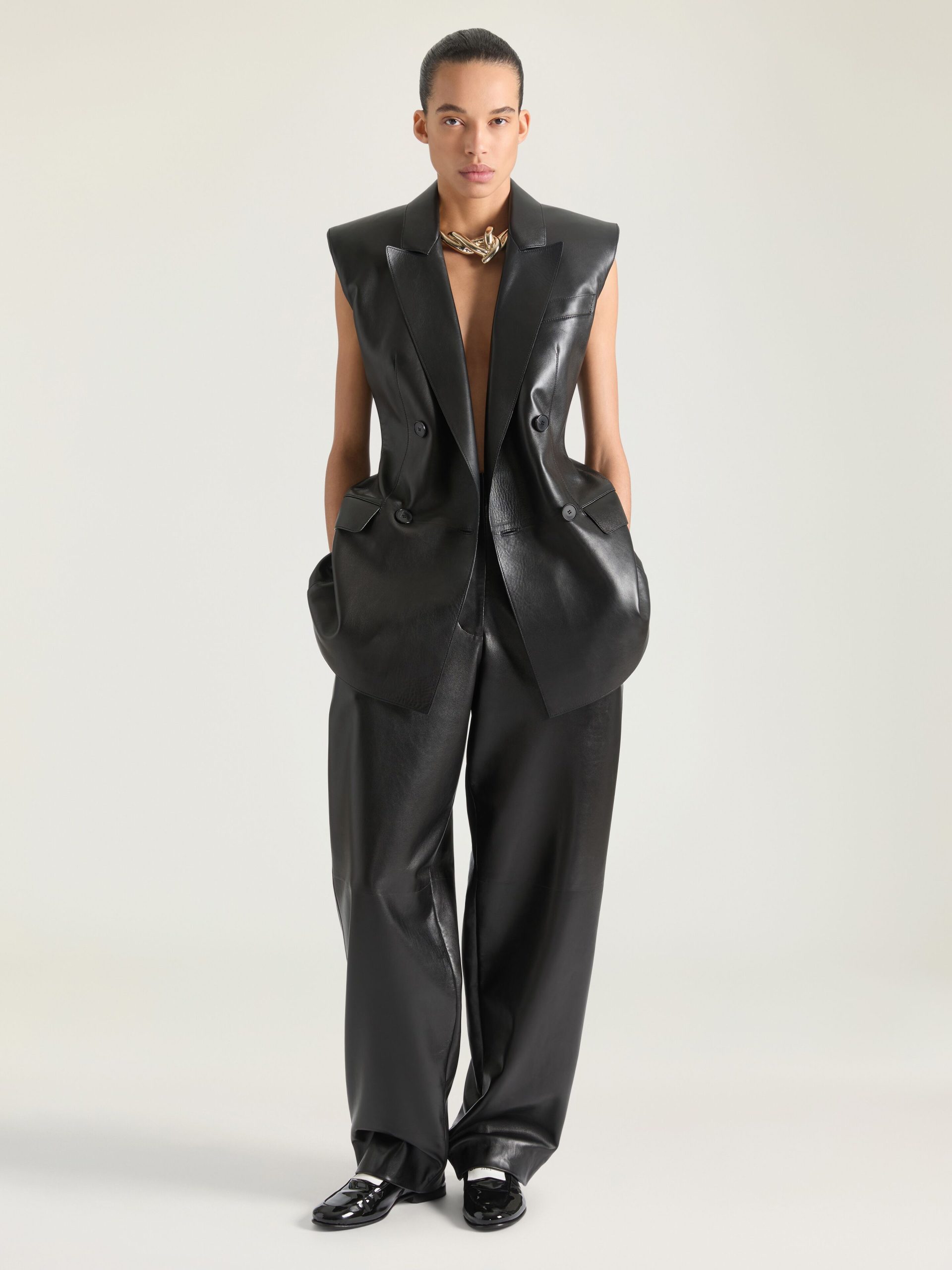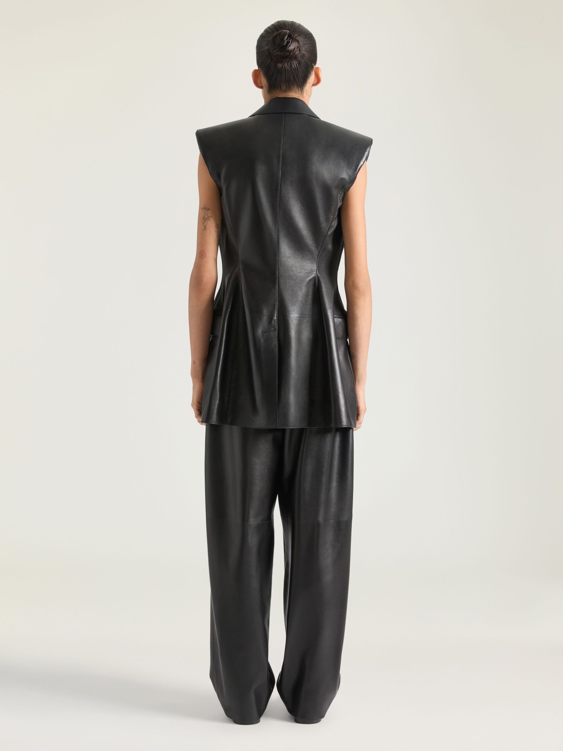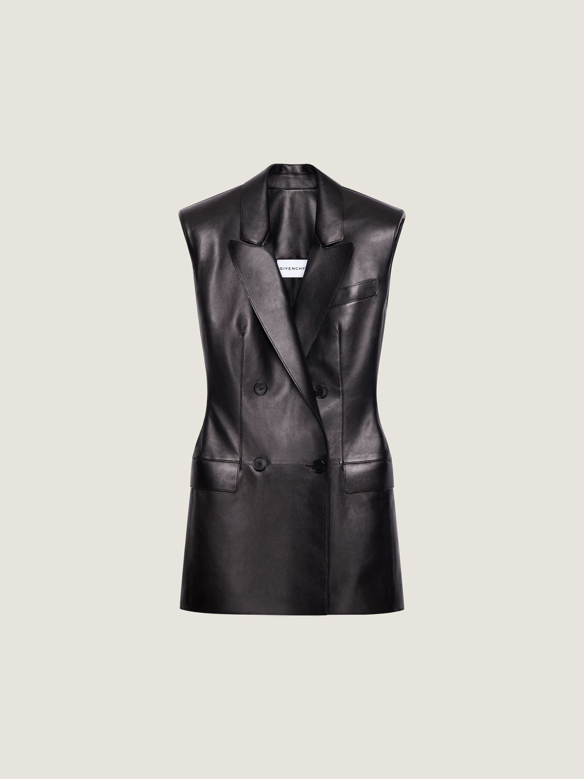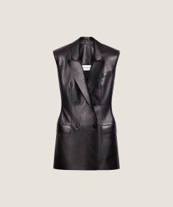 - Sleeveless jacket in plonge lambskin.