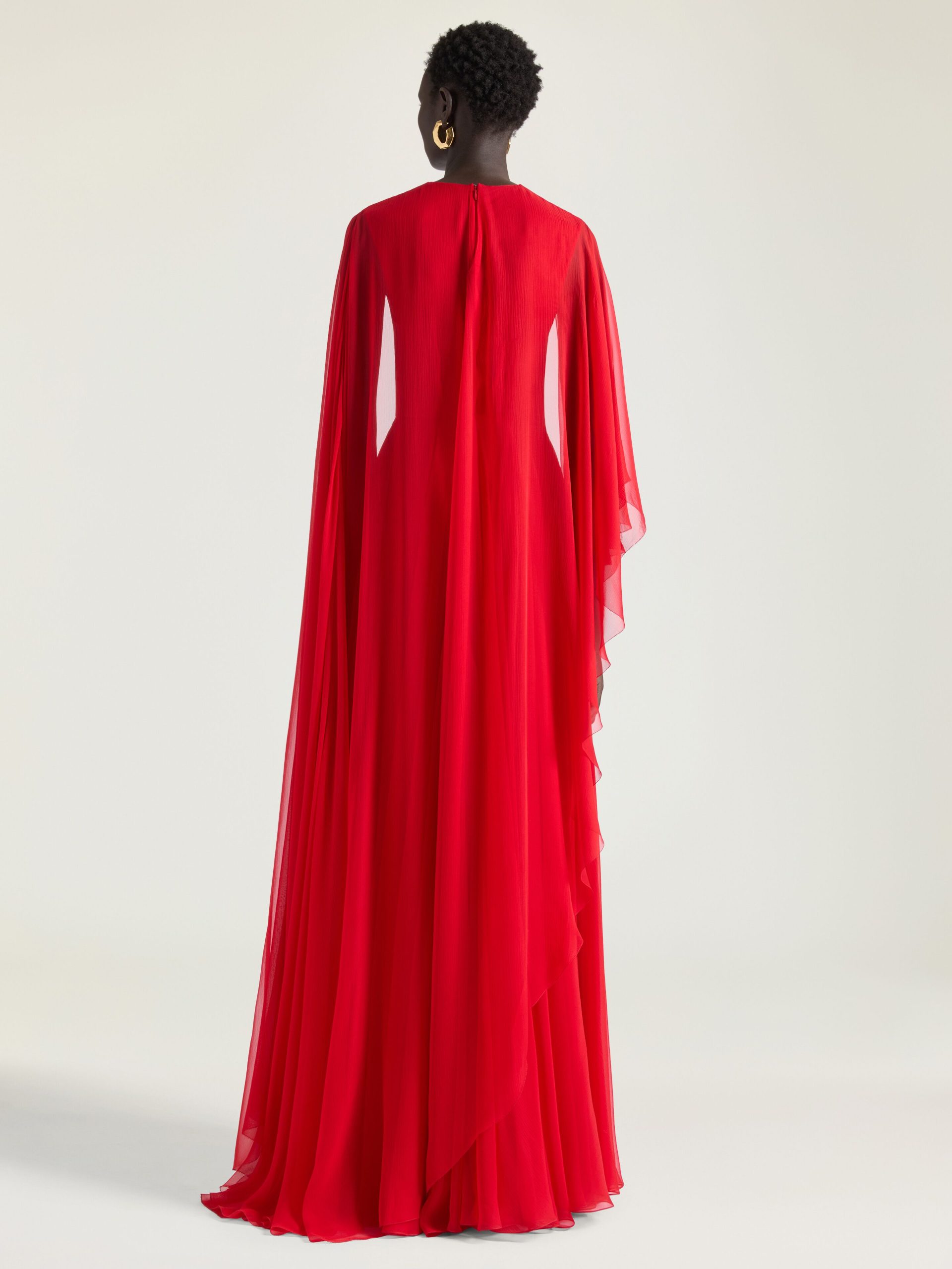 Givenchy Women’s Ready-to-wear Draped Evening Dress In Chiffon With Cape In – Red | Red