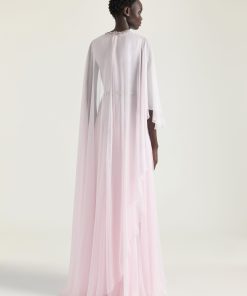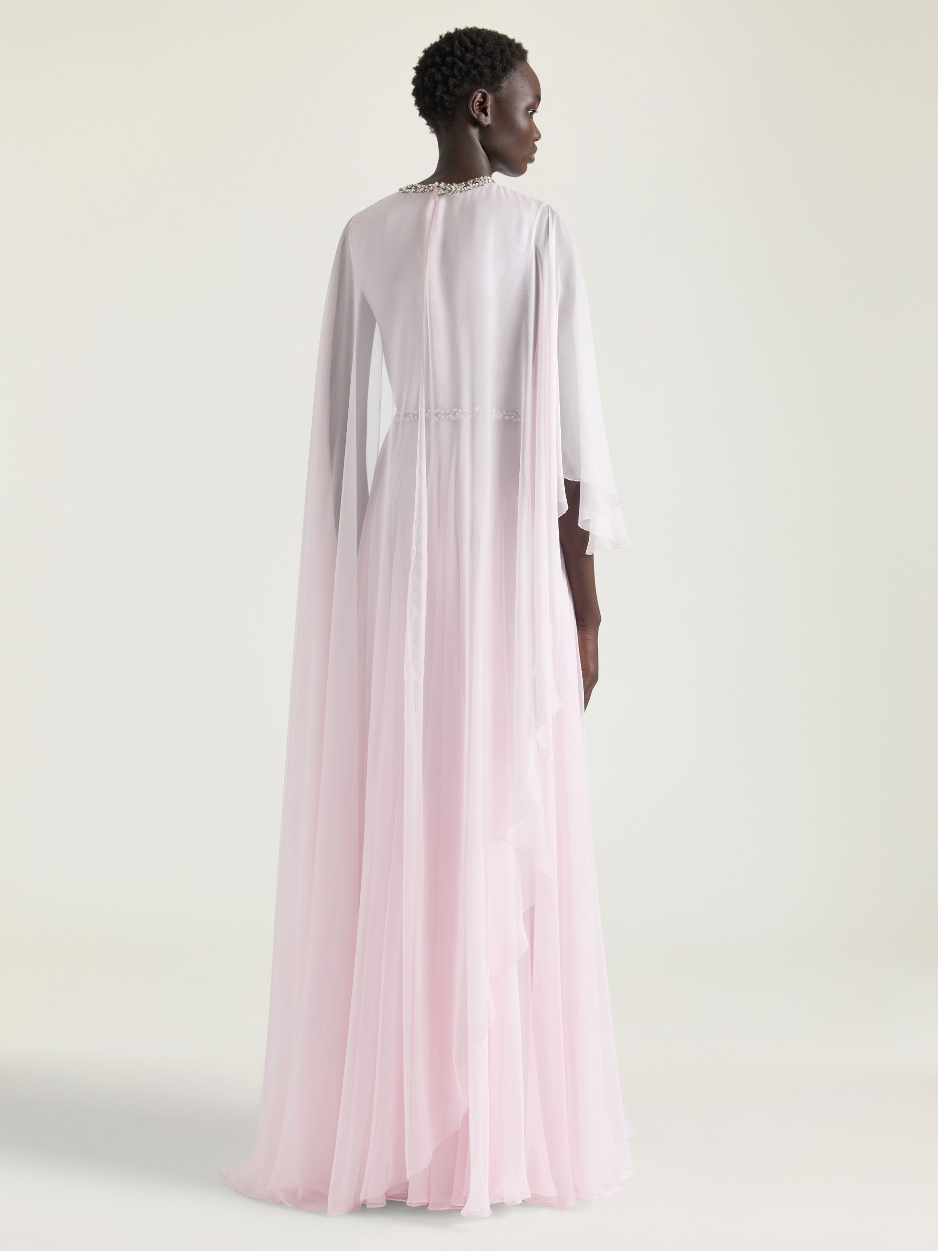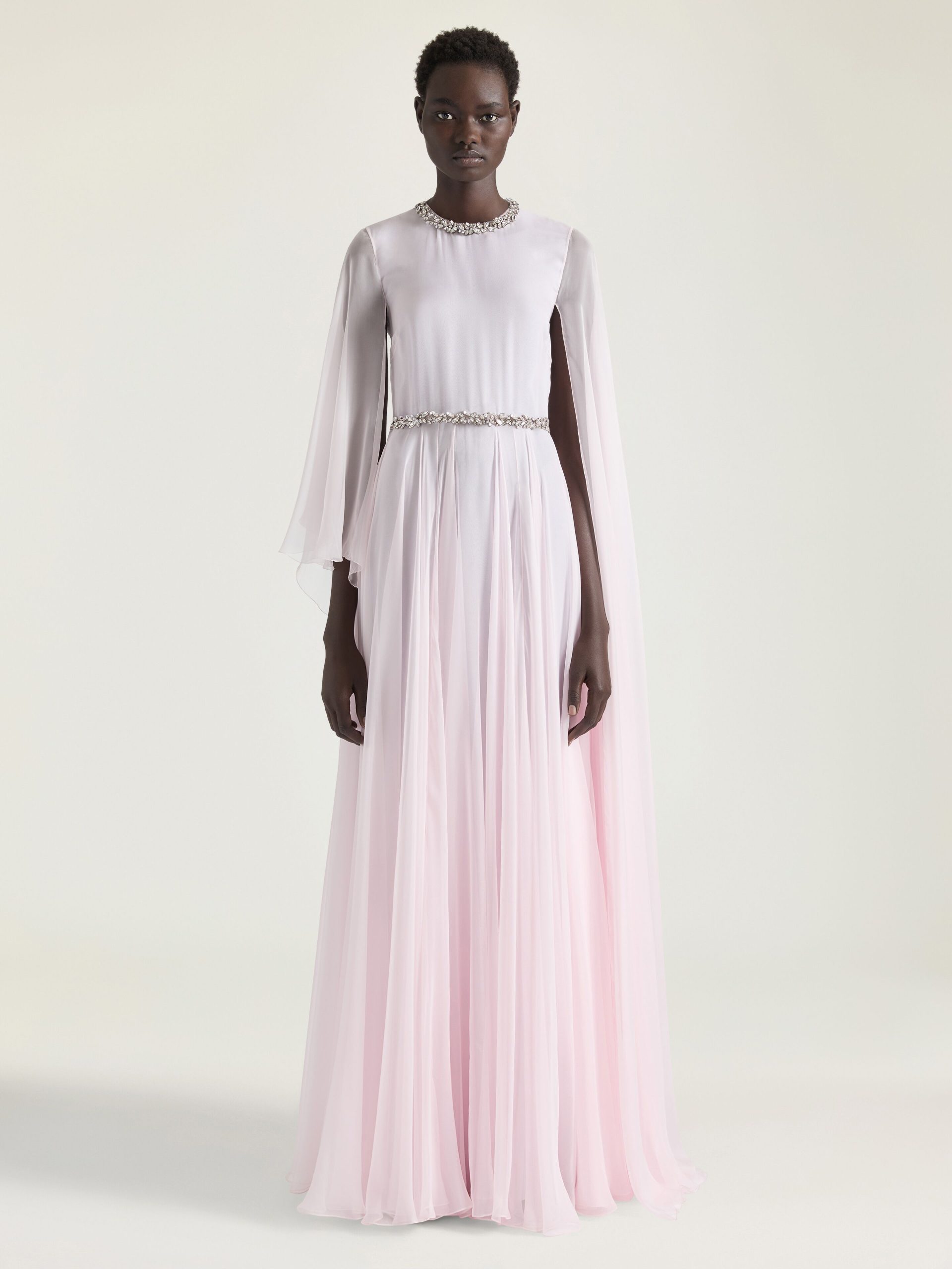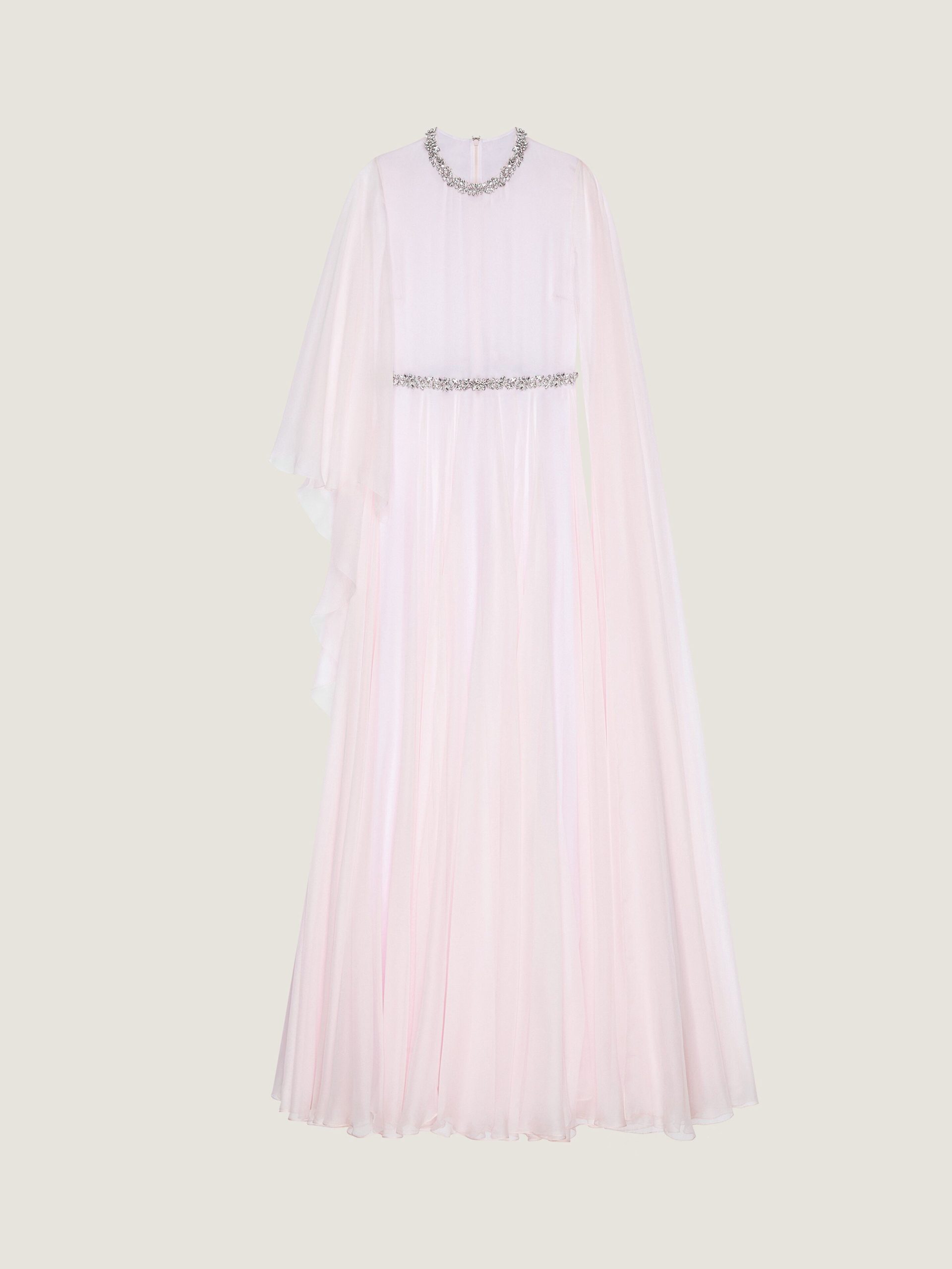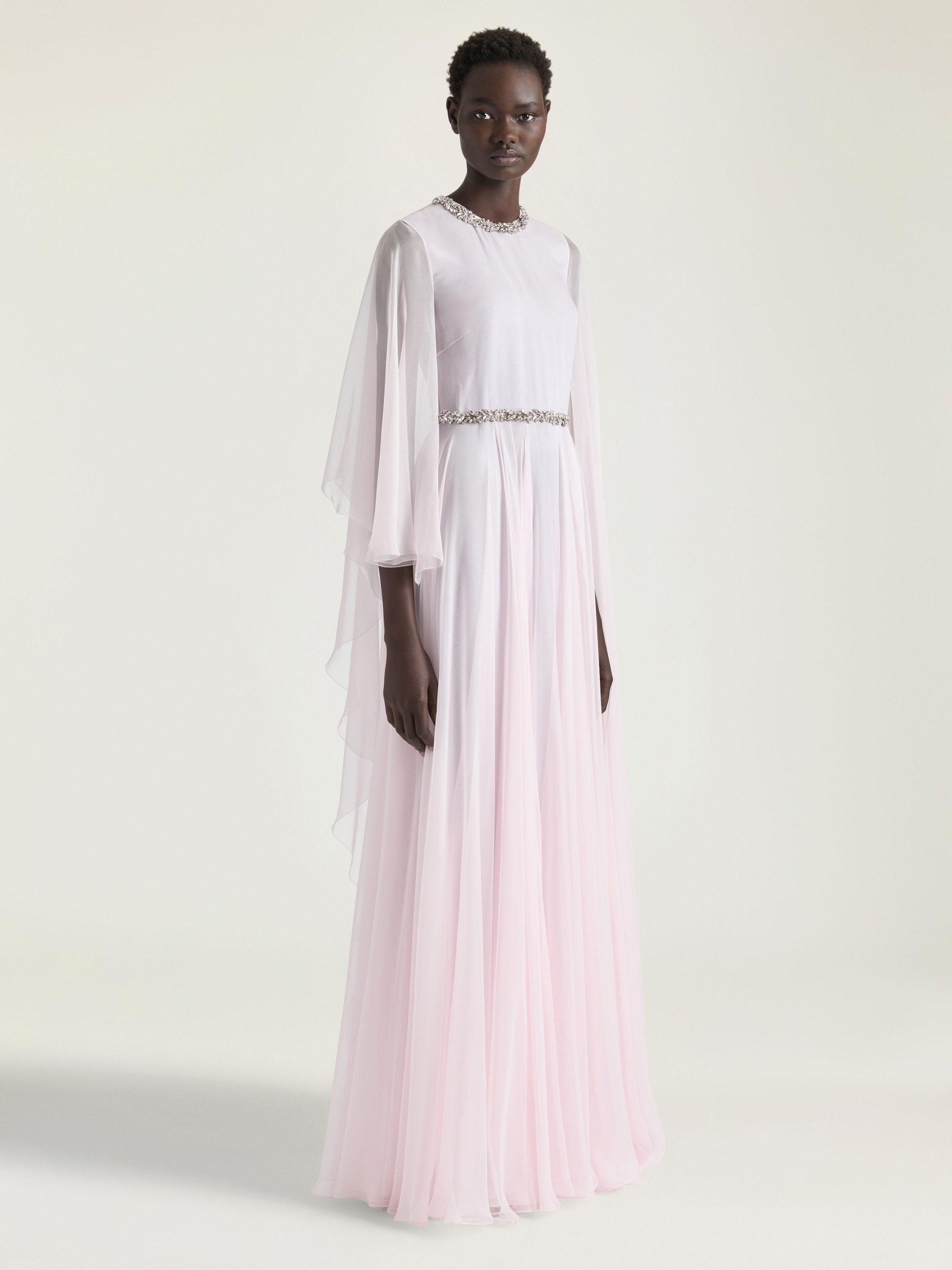 Givenchy Women’s Ready-to-wear Draped Evening Dress In Chiffon With Crystals And Cape In – Light Pink | Light Pink
