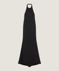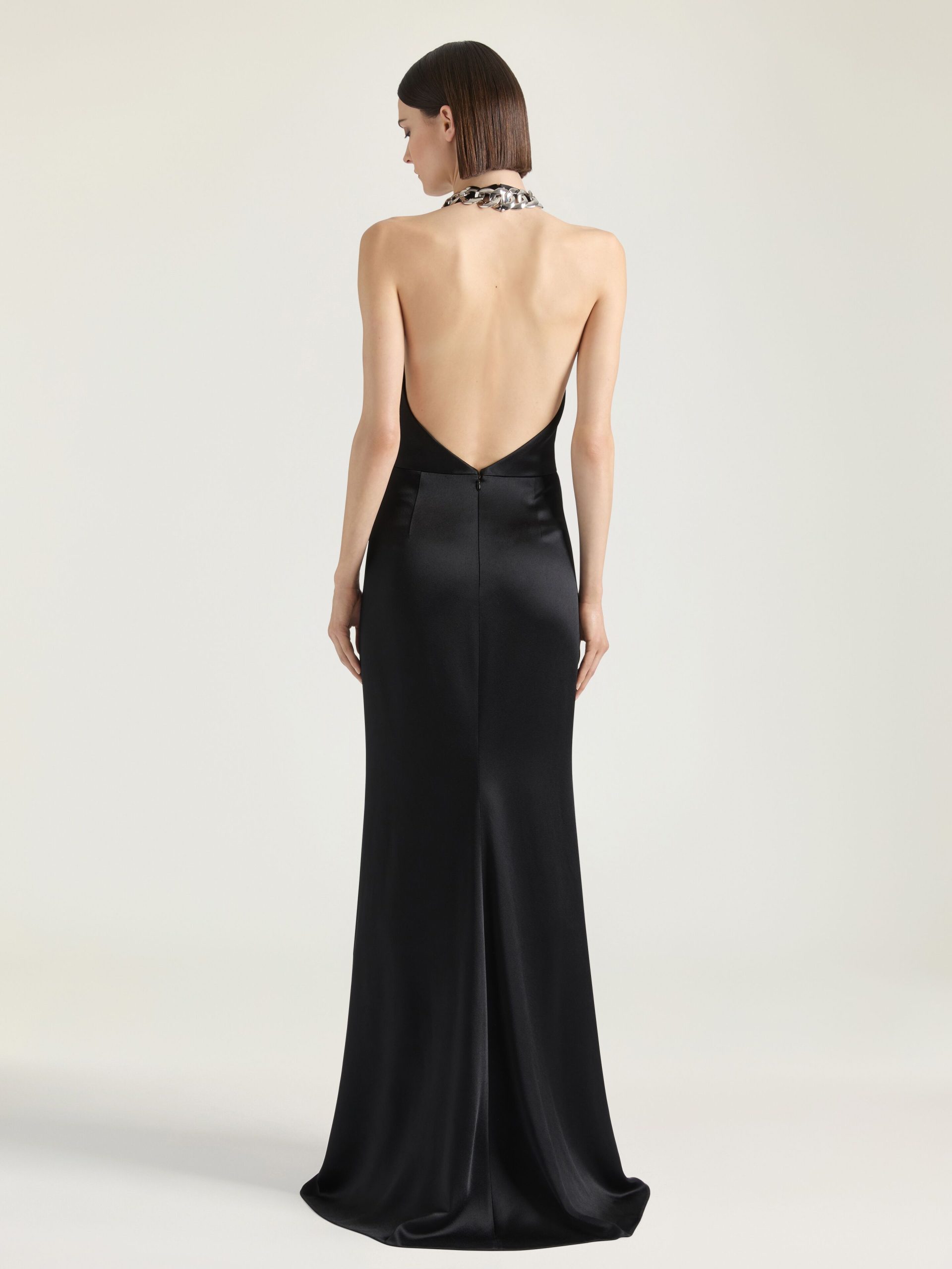 - Long dress in crepe with satin back.