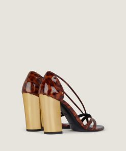 Givenchy Women’s Shoes Block Heeled Sandals In Tortoise Shell Patent Leather In – Dark Brown/black | Dark Brown & Black