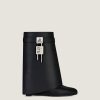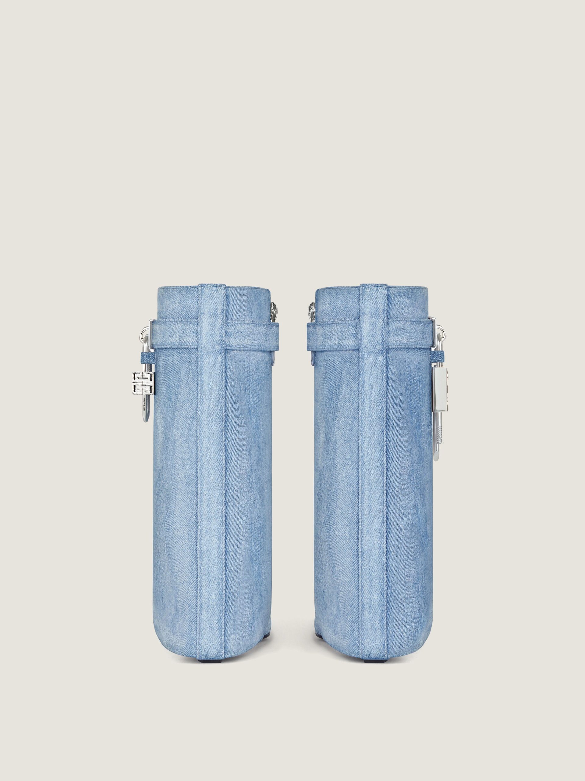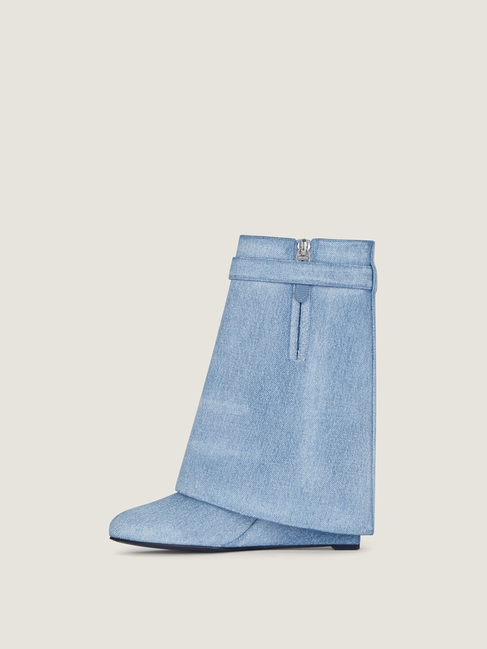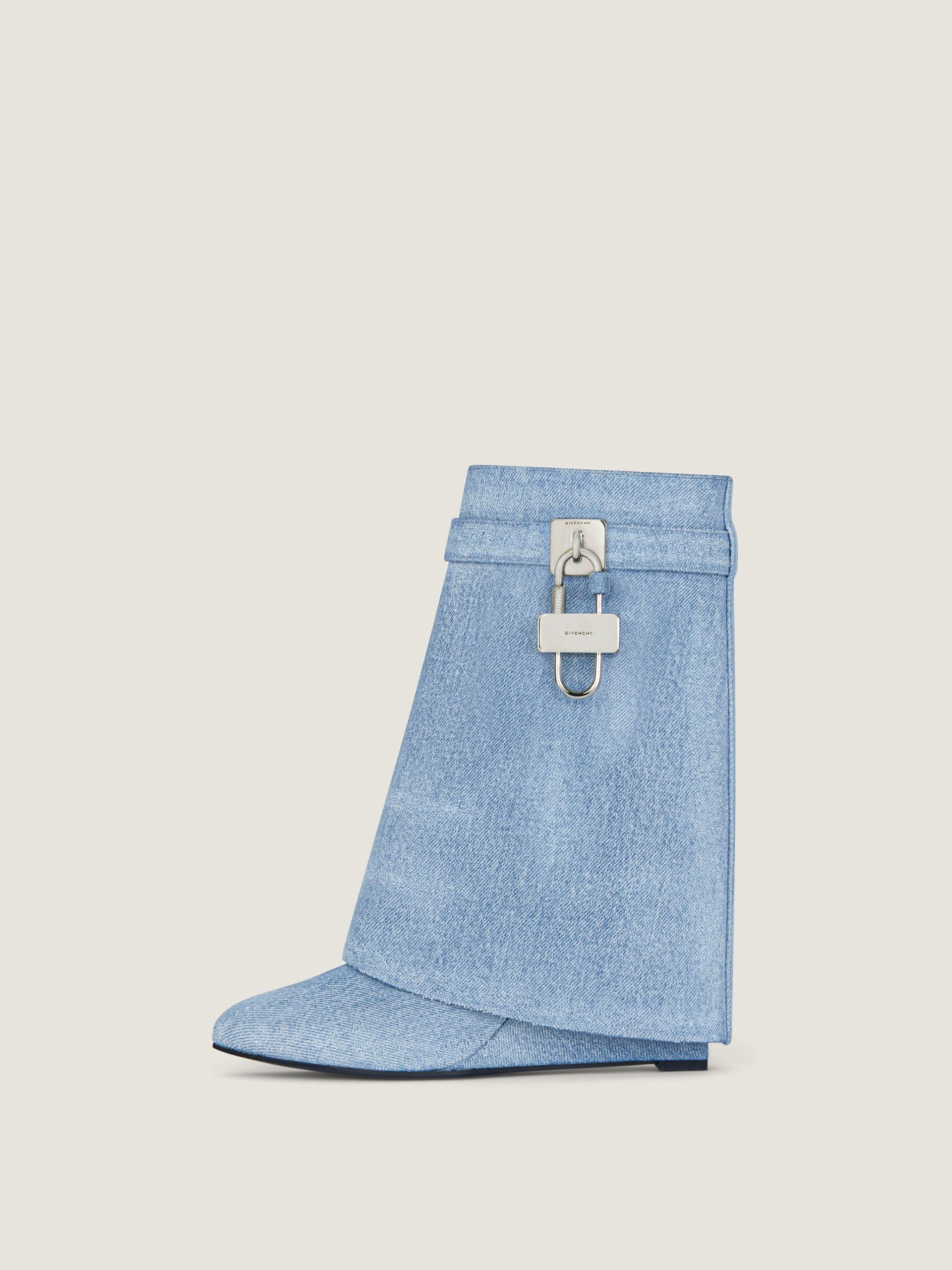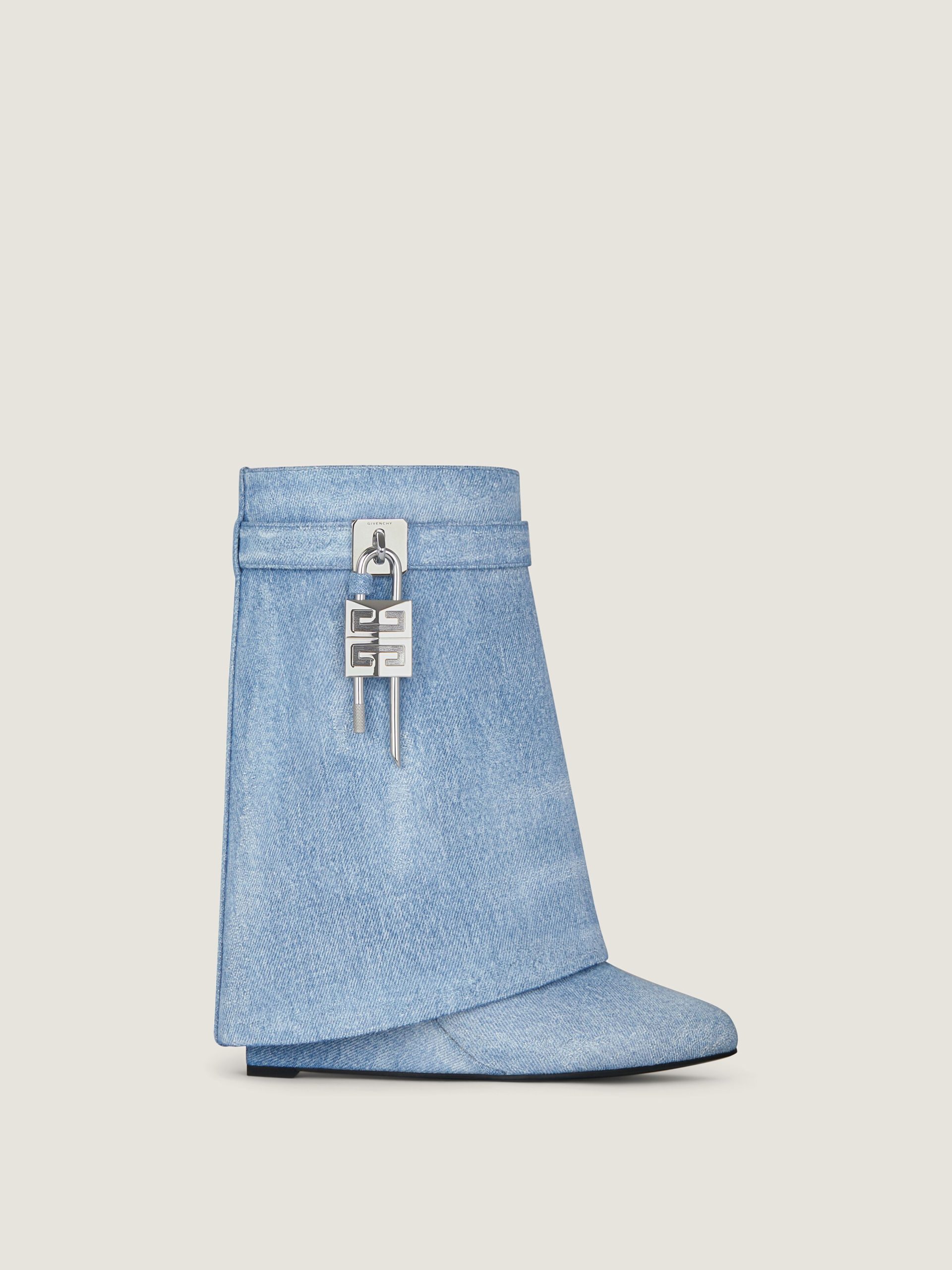 - Denim band with a GIVENCHY metal clasp and 4G padlock on the right boot.