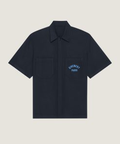 Men’s Ready-to-wear Shirt In Cotton Twill With Givenchy Paris Patch Pocket | Dark Blue