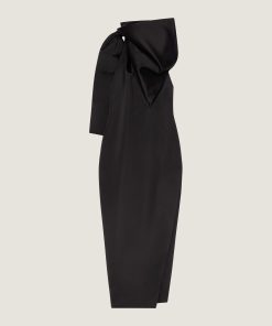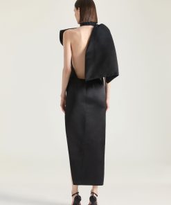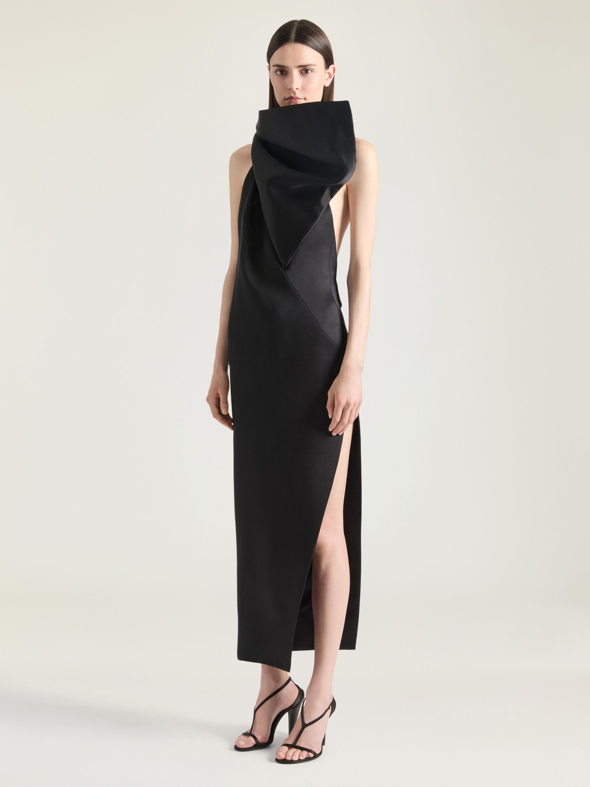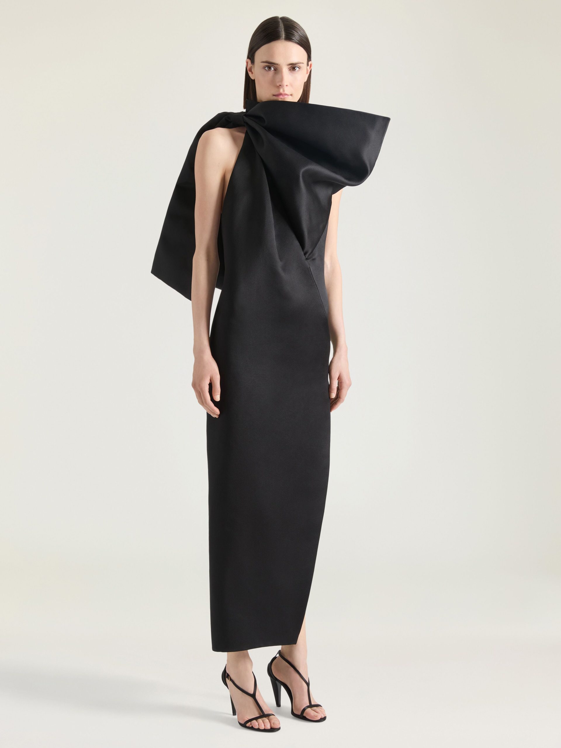 - Long evening dress in silk satin duchesse.
