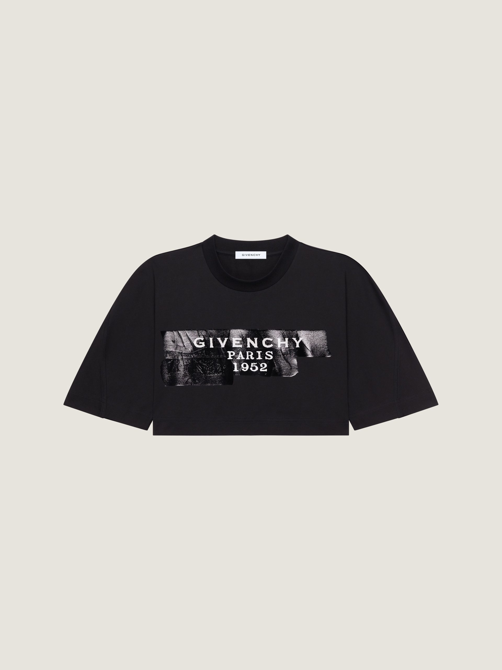 Women’s Ready-to-wear Cropped Cocoon T-shirt In Cotton With Givenchy Tape Print | Black