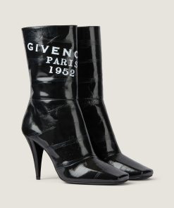 Women’s Shoes Sliced Square Givenchy Tape Ankle Boots In Leather | Black